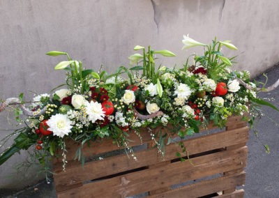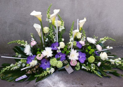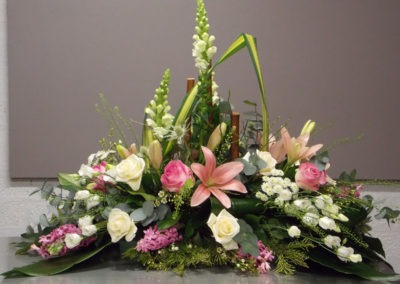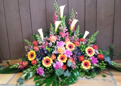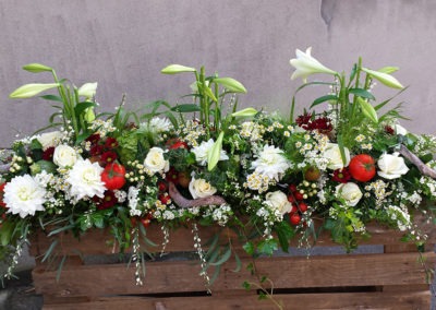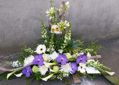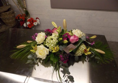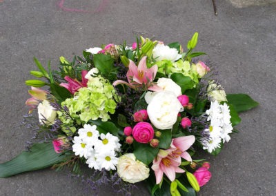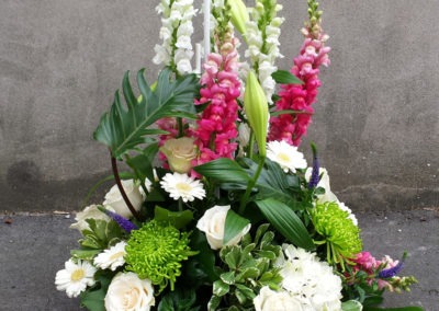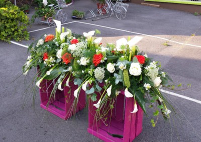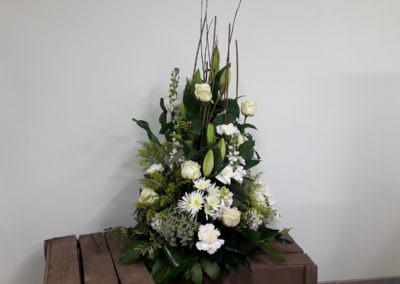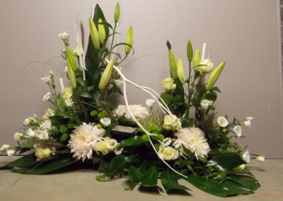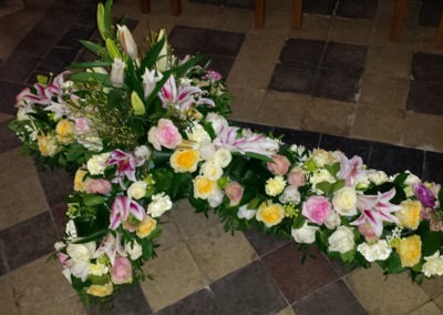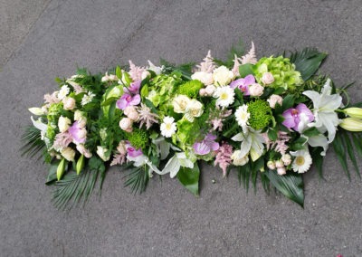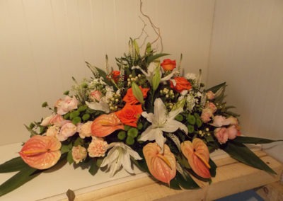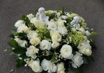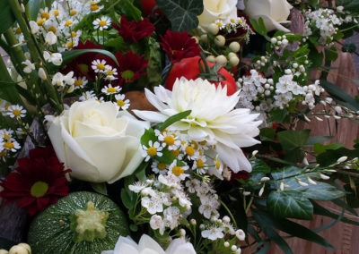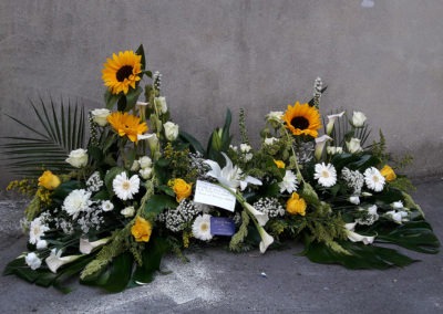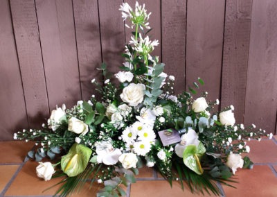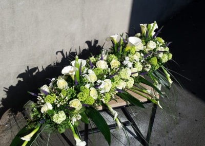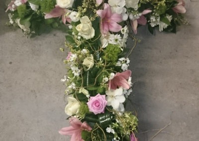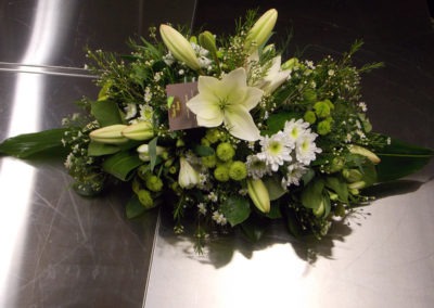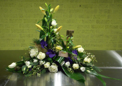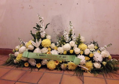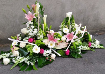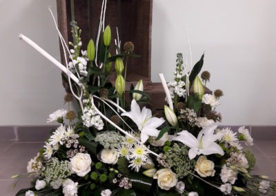 Enfin, si vous souhaitez accompagner le cercueil de fleurs, il est possible de réaliser un dessus de cercueil ou une croix de fleurs.