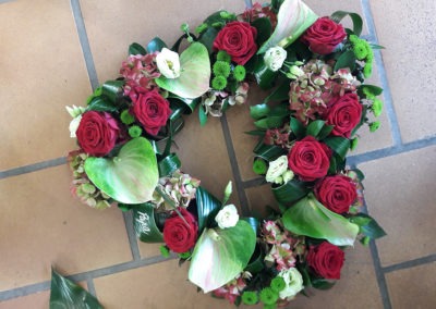 Il existe bien d’autres formes comme le coussin qui est un travail de fleurs généralement de forme ronde et assez plat, le cœur qui suit la forme définit du cœur, lui aussi est plat.